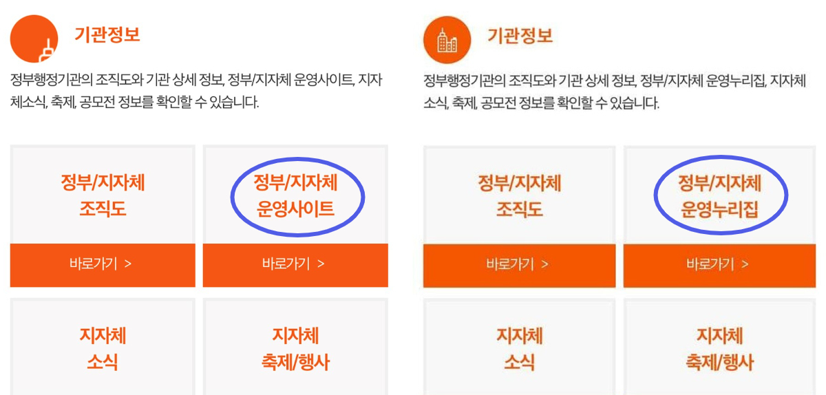 2020년 10월에 전남도청, 2021년 3월에 여성가족부와 문화재청, 통계청, 기상청, 법제처, 강원도교육청, 산업통상자원부, 인천광역시, 한국어촌어항공단, 감사원, 경기도교육청, 2021년 8월에 행정안전부 정부24, 2021년 10월에 질병관리청, 한국교육학술정보원, 12월에 정읍시 등 16곳의 공공기관에서 ‘누리집’으로 고쳤다는 답을 보내왔다.