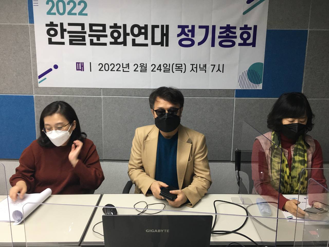 지난 2022년 2월 24일, 한글문화연대 활짝에서 <2022 사단법인 한글문화연대 정기총회>를 열었습니다. 한글문화연대 총회의 의결정족수는 정관 제21조 1항에서 위임 포함하여 20명으로 정하고 있습니다. 한글문화연대의 현재 정회원은 400명이며 문자와 전자우편으로 위임 의사를 밝힌 정회원은 96명이었습니다. 현장에 참석한 회원 7명, 온라인으로 참석한 회원 6명 등 총 13명이 정기총회에 참석하였습니다.