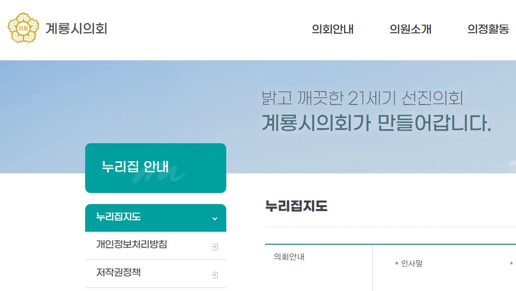 [공문/답변] 사이트맵 등 외국어 대신 쉬운 우리말을 사용해 주십시오. 계룡시의회 2022.06.17