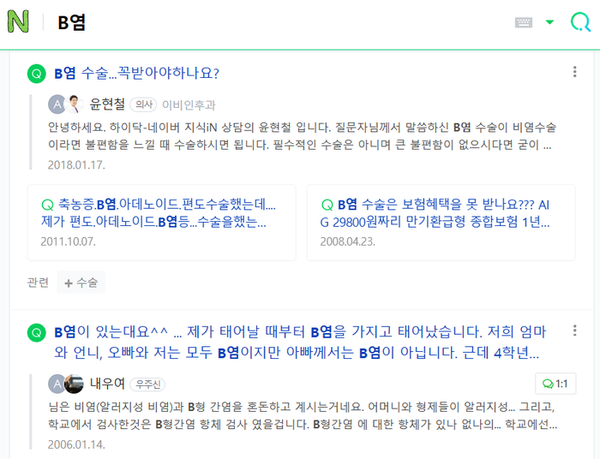 출처: 네이버 ‘B염’ 검색 결과