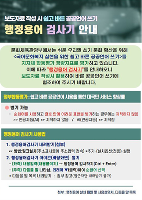 ‘행정용어 검사기’로 불리는 이 프로그램은 이용자가 문장을 입력하면, 어려운 단어를 붉은색으로 표시한다. 각 단어를 클릭하면 문맥에 맞는 쉬운 말이 나타나고, 이를 선택하면 문장이 자동으로 바뀐다. 조사까지 함께 바꿔줘 문법 오류도 줄일 수 있다.