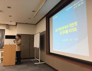 경기도 인재개발원2 우리말글 강연 활동/경기도 인재개발원 [우리말글 강연 활동] ● 이건범 대표 경기도인재개발원에서 주관하는 교육 과정 ▷ 강연명: 쉽고 바르게 써서 국민의 알 권리를 지키자 ▷ 대상: 도, 시, 군 공무원 및 공공기관 직원 ▷ 때/곳: 2017년 10월 25일 ● 김명진 운영위원 2017. 10. 25. [활동] 우리말글 강연 활동 ▷ 강연 주제 : 쉽고 바르게 써서 국민의 알 권리를 지키자. ▷ 때 : 2017년 7월 5일 ▷ 곳 : 경기도 인재개발원 2017. 7. 6. 이전 1 다음
