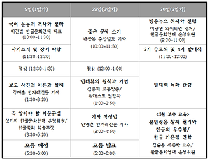 대학생 기자단257 한국어를 사랑해야 하는 이유, 언어는 인권이다 - 이유진 기자 한국어를 사랑해야 하는 이유, 언어는 인권이다 한글문화연대 대학생 기자단 4기 이유진 기자 yoojin7305@naver.com 한국사람은 왜 한국어를 사랑해야 하는가? 한국사람인 나 자신에게 질문을 해봐도 “한국사람이기 때문에 당연히 한국어를 사랑해야 한다. 우리 것은 우리가 지키자!”라는 대답이 나온다. 대부분 이렇게 대답하는 것을 주위에서 흔히 볼 수 있다. 너무 뻔한 답이다. “당신은 왜 우리말, 한국어를 사랑하는가?” 이런 의문에 시원하고 멋진 답을 말해주는 책을 소개하고자 한다. 바로 라는 책이다. 이 책은 한글문화연대에서 국어 사랑을 위해 활약하고 있는 이건범 대표가 쓴 책이다. 원래 노란 표지의 책이지만 한글문화연대에서 대학생 기자단을 하고 있는 나는 한정판인 빨간 책을 얻게 되었다. 무려.. 2018. 3. 26. 한글 아리아리 661 한글문화연대 소식지 661 2018년 3월 22일 발행인 : 이건범 (한글문화연대 상임대표) 한글문화연대 바로가기 ◆ 알기 쉬운 헌법 만들기 국민운동본부 광화문 거리 홍보 는 알기 쉬운 헌법 개정안을 앞두고 거리 홍보 계획을 세웠습니다. 3월 16일(금)과 3월 19일(월), 점심 시간을 이용하여 광화문 네거리에서 시민을 대상으로 홍보 활동을 하였습니다. 3월 16일(금)은 햇볕은 따스했지만 때때로 부는 바람에 현수막을 들고 있기가 버거웠지만, 그런 상황에서도 500장의 홍보물을 뿌렸습니다. 3월 19일(월)에도 오전 11시 30분부터 1시간 동안 거리 홍보 활동을 하였습니다. ◆ 알기 쉬운 헌법 개정안 헌법은 나라의 최고 법이며, 나라의 주인은 국민입니다. 그러므로 헌법은 온 국민이 알기 쉽고, 국민에.. 2018. 3. 23. 보라빛 향기? 보랏빛 향기! - 남재윤 기자 보라빛 향기? 보랏빛 향기! 한글문화연대 대학생 기자단 4기 남재윤 기자 pat0517@naver.com 길가를 걷다 보면 어디서나 노래가 들려온다. 텔레비전 프로그램에 나온 노래를 찾아 듣기도 하고, 좋아하는 가수의 노래를 듣기도 한다. 하지만 이런 노래를 듣고 있다 보면, 흠칫 놀라는 경우가 있다. 맞춤법이 틀렸기 때문이다. 얼마 전 데뷔한 신인 가수 정세운의 ‘오해는 마’에는 “널 위해서 산 건 아닌데 / 딱히 줄 사람이 없네 / 버리던지 가지던지”라는 가사가 있다. ‘-든’은 ‘-든지’의 준말로 대상 가운데 어떤 것이 선택될 수 있음을 나타낸다. ‘-던’은 과거에 있었던 경험을 나타낸다. 이 노래에서는 버리거나 가지거나 하라는 뜻으로, 선택의 의미다. 그러므로 ‘버리든지 가지든지’라고 표현하는 것.. 2017. 11. 16. 기자단, 한글의 발자취를 따라가다 - 김채원 기자 기자단, 한글의 발자취를 따라가다 한글문화연대 대학생 기자단 4기 김채원 기자 chaewon11@naver.com 지난달 20일, 한글문화연대 대학생 기자단 4기는 ‘한글 가온길’을 다녀왔다. 4기의 첫 견학이자, ‘한글 가온길’ 견학이기에 어떤 활동으로 한글을 깊이 이해할 수 있을까 하는 설렘 가득한 표정으로 다들 모였다. 한글 가온길은 세종대왕이 한글을 창제했던 경복궁을 중심으로 광화문 주변인 서울특별시 종로구 세종로에 위치해 있다. 한글을 지키고 널리 알리고자 애쓴 사람들의 이야기와 작품들이 가득한 곳이다. 가온은 ‘가운데’를 뜻하는 순우리말로, 한글 가온길이란 한글을 지키고자 했던 역사의 중심지로 2013년에 서울시에서 지정하였다. 한글을 지키고 알리려는 업적을 기리기 위해 상징조형물 등을 조성하.. 2017. 6. 12. 대학생기자단 4기 교육/2017.04.09(일) 2017년 4월 9일(일)에 공간 '활짝'에서 한글문화연대 대학생기자단 4기 1차 교육이 있었습니다. 첫 시간은 우리 단체 이건범 대표가 에 대해, 둘째 시간은 한겨레신문 강재훈 기자가 를, 셋째 시간은 우리 단체 성기지 운영위원이 을 교육했습니다. 또한, 4기가 된 기자들의 자기 소개 시간도 있었습니다. 앞으로 1년동안 함께 할 친구들 앞에서 기자단을 지원한 이유와 평소 자신이 좋아하는 것 등 일상적인 이야기뿐만 아니라 앞날의 고민도 이야기하며 공감도 하는 소중한 시간이었습니다. 대학생기자단 4기 2차 교육은 4월 29일(토)에 있습니다. 2017. 4. 10. [알림] 대학생기자단 3기 수료식과 4기 교육 및 발대식 안내 [알림] 대학생기자단 3기 수료식과 4기 교육 및 발대식 안내 한글문화연대 대학생기자단 4기 교육일정과 3기 수료식, 4기 발대식 일정을 안내합니다. ▲ 교육 날짜 4월 9일(일) 아침 10시~낮 6시 4월 29일(토) 아침 10시~낮 6시 4월 30일(일) 아침 9시30분~11시 ▲ 교육 장소: 공간 활짝(한글문화연대 사무국 옆 강의실) ▲ 3기 수료식과 4기 발대식: 11시~12시 ▲ 교육시간표 ▲ 추가 교육-견학 한글박물관 방송언론사(YTN/JTBC) 견학은 2017년 기자 활동 기간에 진행합니다. 2017. 4. 6. [알림] 한글문화연대 대학생 기자단 4기 합격자 ** 축하합니다 ** 한글문화연대 기자단 4기 합격자를 다음과 같이 알립니다. 합격자분들께 축하드리며 더불어 우리말글과 한글문화연대에 대한 관심과 열정을 보여준 모든 지원자분들께도 감사인사를 드립니다. 고맙습니다. 앞으로 '한글문화연대 대학생 기자단 4기'의 활동 기대해주세요! (* 모임과 교육 일정은