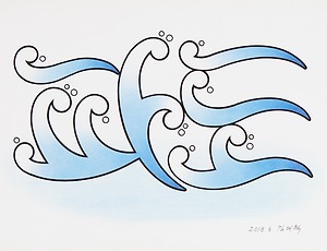 물결2 퐁당퐁당 퐁당퐁당(48.5 x 33.5cm)은 2017년 7월에 제작하여 2018년 가을에 전시, 발표한 작품으로, 국립한글박물관에 소장되어 올해 3월에 국가유물로 지정되었습니다. 퐁당퐁당은 작고 단단한 물건이 잇따라 물에 떨어지거나 빠질 때 가볍게 나는 소리로, '소리시늉말' 혹은 '소리흉내말'입니다. 깡총깡총과 같은 모양이나 움직임을 흉내 낸 말인 '꼴흉내말'이 아니어서 형태로 표현하기가 쉽지는 않았지만 'ㅇ'을 잔잔한 연못에 돌을 던질 때 동그라미를 그리며 번져 나가는 '물무늬'를 이용하면 좋을 듯하여 표현을 해보았습니다. 어렸을 적에 많이 불렀던 동요의 느낌을 살려 높낮이에 변화를 주었고, 물이 튀는 모양을 연상할 수 있도록 곡선만을 사용하여 제작하였습니다. 수면에 일어나는 물결의 무늬인 '물둘레'와 잘 .. 2019. 9. 19. 파도 파도(42.5 X 29.5cm)는 2018년 6월에 제작되어 그해 가을에 전시, 발표된 작품입니다. 바닷물이 출렁이는 물결을 뜻하는 파도는 그림글자로 표현하기가 쉽지 않을 것으로 예상했었지만 의외로 빠르게 완성시켰던 것으로 기억합니다. 물결의 특징에 어울리는 반복적인 자유곡선만을 사용하여 율동감을 느낄 수 있도록 하였고, 색상은 바닷물의 파란색과 물보라의 흰색을 선택하여 파도의 시원함을 표현하였습니다. 2019. 7. 25. 이전 1 다음