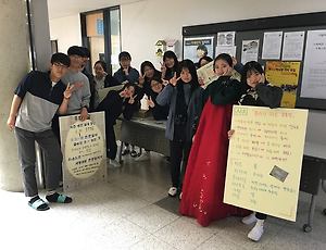 지난 11월 13일 인천하늘고등학교 동아리 '반크'에서 한글과 우리말 사랑 활동을 펼쳐 얻은 수익금 192,000원을 한글 문화 발전에 쓰라며 우리 단체에 기부하였습니다. 인천하늘고등학교 정규 동아리 ‘반크(VANK)’는 해외 사이트 오류 고치기, 서한문 작성 활동, 외교 및 정치 관련 토론, 매월 반크 신문 발간, 독도 및 동해 관련 행사 진행, 독도 체험관 및 전쟁과 여성인권박물관 견학 등 다양한 활동을 하고 있습니다. 반크 동아리는 최근 학생들이 신조어 등 무분별하게 언어를 사용하고 있음을 깨닫고 이를 개선해 나가기 위해 지난 10월 교내 행사를 진행하였다고 합니다. 무궁화, 훈민정음, 원고지 형태의 디자인이 담긴 핀 버튼, 거울, 메모지를 제작해 행사에서 판매하였습니다. 제품은 모두 교내 여러 학..