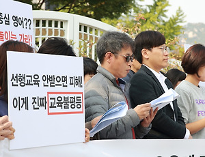 사교육19 [기자회견]초등 1,2학년 영어 방과후 교실 반대 우리 단체는 교육부에서 추진하려는 '유치원 방과후 영어 과정 및 초등 1,2학년 방과후 영어 교실 허용'을 비판하는 성명서에 이름을 올리고, 기자회견에 참석하여 반대의 뜻을 밝혔다. 사교육걱정없는세상, 전국교직원노동조합 등 21개 시민·교육·학부모 단체는 10월 16일(화) 아침 11시 정부서울청사 앞에서 기자회견을 열어 교육부에서 추진하려는 유치원 및 초등 1,2학년 방과후 영어 교실 허용 정책을 강력히 비판했다. 기자회견문 보기 2018. 10. 16. [보도자료] 1인당 사교육비 250만 원 유발 교육부 초등용 한자 300자 1인당 사교육비 250만 원 유발 교육부 초등용 한자 300자 ● 5~6학년 교과서 한자 표기는 한자 1천 자 사교육 강제하는 효과● 현행 10건의 한자병기, 몇십 배 확대될 위험● 학생 1인당 사교육비 250만 원 유발● 한자 가르치기 위해 우리 국어 낱말을 수단으로 이용 지난해 12월 30일, 교육부에서는 2019년부터 초등 5~6학년 교과서에 한자 표기를 실질적으로 확대하겠다는 방침을 밝혔다. 하지만 학습 용어 이해에 한자 표기는 아무런 도움도 되지 않지만, 집필진의 ‘무분별한 병기’를 부채질하고, 유치원부터 한자 사교육을 ‘필수’로 만들 부작용의 위험이 크다. ○ 학습 용어 이해에 한자 표기는 아무런 도움 안 돼. 교육부에서는 한자 표기가 한자어 이해에 어떤 도움이 되는지 아무런 근거도 대지 못했.. 2017. 1. 20. 라디오 대담-CBS 김현정의 뉴스쇼, "한글전용 위헌" vs "한자혼용 안돼" 지난 2016년 5월 10일(화) 라디오 'CBS김현정의 뉴스쇼'에서 "한글전용 위헌" 대 " 한자혼용 안돼' 대담 * 대담 : - 심재기 어문정책정상화추진회장, 前 국립국어원장 - 이건범 한글문화연대 대표 ▶ 자세한 내용은 아래 "더보기"를 누르면 볼 수 있습니다. ◇ 김현정 우리나라에는 국어기본법이라는 게 있습니다. 여기 3조에 보면 ‘한글이란 국어를 표기하는 우리의 고유 문자를 말한다’라고 규정이 돼 있습니다. 한마디로 한글 전용 정책입니다. 이 법을 바탕으로 해서 지금 교과서에는 한자 혼용이 금지돼 있는 거고요. 또 초.중고등학교 필수 교육에서도 한자가 배제된 겁니다. 공문서에도 한자를 쓸 수가 없는 거죠. 그런데 이 국어기본법 3조가 위헌이라는 헌법소원이 제기가 됐고, 4년 만인 오는 12일 그.. 2016. 5. 17. [영상]한자교육 관련 공청회(2015.08.24.한국교원대학교) 한자교육 관련 사기공청회(2015.08.24.) 2015. 9. 10. 한자 Vs. 漢字-문화방송 시사매거진2580 595회(2015.09.06.) 문화방송 시사매거진2580 595회(2015.09.06.) 초등학교 3학년 교과서에 한자를 함께 쓰자는 소위 한자 병기를 둘러싸고 논란이 뜨겁다. 교육부의 이같은 방침이 확정되면 1970년 이후 48년 만에 초등학교 교과서에 다시 한자가 등장하게 되는 것인데.. 한자를 일찍부터 가르쳐야 한다는 쪽과 아이들의 학습 부담만 가중시킬 뿐이라는 쪽이 첨예하게 맞서는 가운데 교육부가 마련한 공청회는 양측의 충돌로 난장판이 되어 버렸다. 한 편에선 한자 병기 방침이 나오자 벌써부터 한자 사교육 열풍의 조짐도 벌어지고 있는데.. (http://imbbs.imbc.com/metaview.mbc?bid=sisa2580_clip&list_id=3172319) 2015. 9. 7. [한국일보/기고]교과서 한자 병기, 추진 근거가 없다 교과서 한자 병기, 추진 근거가 없다 이건범 한글문화연대 대표 * 이 글은 2015년 8월 30일, 한국일보에 실렸습니다. (http://www.hankookilbo.com/v/79dc74569a984fd0b437a1f657628174) 교육부에서 초등 교과서 한자 병기 방침을 검토하겠다고 밝힌 지 벌써 열 달이 지났다. 발표 직후부터 연구진을 꾸려 연구하겠노라고 말했지만 98%의 초등학교에서 한자교육을 시킨다고 해놓고 몇 시간이나 가르치고 얼마나 많은 양을 다루는지 조사한 것도 없다. 발표 전이나 후에나 연구다운 연구가 한 건도 없다. 그리고 결정의 시기는 한 달 앞으로 다가왔다. 한자 병기는 교육 전반의 문제이기도 하지만 이를 넘어서 우리 문자 생활에 큰 혼란을 부를 일인데, 이렇게 구렁이 담 넘어가.. 2015. 9. 1. 초등 교과서 한자 병기를 막기 위한 서명 운동(1) 교육부의 초등 교과서 한자 병기 정책을 막기 위한 서명 운동(1) (2015년 7월 2일(목) 광화문역 7번 출입구) - 초등 교과서 한자 병기 반대 국민운동본부/한글문화연대 2015. 7. 2. 초등학교 교과서 한자 병기에 따른 논란-이지영 대학생 기자 초등학교 교과서 한자 병기에 따른 논란 한글문화연대 대학생기자단 2기 이지영 기자 (milk5006@naver.com) 교육부가 2018년부터 초등학교 3학년 이상의 학생이 배우는 교과서에 한글과 한자를 ‘병기’(倂記)하는 방안을 추진하겠다고 밝히면서 또다시 한자 병기 논란이 점화됐다. 1970년 한글 전용화 정책에 따라 초등학교 교과서에서 한자가 퇴출당했다. 하지만 지난 47년 동안 초등학교 교육에서 한자 교육이 필요하다는 주장이 이어져 왔다. 교육부는 “꾸준히 민원이 제기돼 검토하는 것”이라며 “결정된 것은 없고 공청회 등을 통해 찬반 의견을 듣고 7~8월 중 확정할 것”이라고 밝혔다. 이에 한자 병기를 내세우는 이들은 자연스러운 한자 교육을 통해 학생들의 문맥 이해도와 어휘력이 향상된다고 주장한다... 2015. 5. 27. [강원도민일보]교