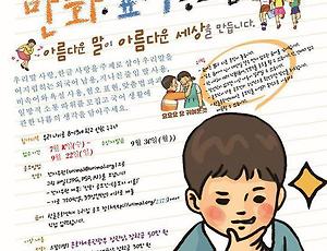 수상5 [보도자료] 한글문화연대, 574돌 한글날 맞아 "바른 말 고운 말 쉬운 말 만화·표어 공모전" 열어 한글문화연대, 574돌 한글날 맞아 “바른 말 고운 말 쉬운 말 만화·표어 공모전” 열어 사단법인 한글문화연대(대표 이건범)는 574돌 한글날을 맞아 청소년을 대상으로 “바른 말 고운 말 쉬운 말 만화·표어 공모전”을 7월 10일부터 9월 20일까지 열었다. 이번 공모전에는 초등학생부터 고등학생까지 다양한 청소년의 참여로 모두 964개의 작품이 응모되었고, 공정한 심사를 거쳐 3개의 만화, 5개의 표어가 선정되었다. 수상한 작품에는 문화체육관광부 장관상과 한글문화연대 대표상이 수여된다. 만화 부문 으뜸상은 김미소(오룡중1)의 ‘미래의 언어’, 버금상은 박서연(서울영상고3)의 ‘우리말을 지켜줘!’가, 보람상은 정해민(서울영상고2)의 ‘착한말, 나쁜말 양파실험’이 수상했다. 표어 부문 으뜸상은 박서윤(산본중.. 2020. 10. 8. [알림] 2020 바른 말 쉬운 말 고운 말 만화(웹툰)·표어 공모전 수상자 발표 2020 바른 말 고운 말 쉬운 말 만화(웹툰)·표어 공모전 수상작을 아래와 같이 발표합니다. 수상한 분께 진심으로 축하드립니다. 2020 바른 말 고운 말 쉬운 말 만화(웹툰)·표어 공모전 수상 으뜸 줄여쓰면 먹통, 바르게 쓰면 소통 박서윤(산본중 1학년) 버금 외래어에 꼬이는 혀, 줄임말에 막히는 귀 이민정(풍문고 2학년) 늘어나는 바른 말, 줄어드는 세대차이 차시은(황곡초 6학년) 보람 누군가에겐 재미, 누군가에겐 폭력 이유찬(대구영신중 1학년) 그들에게는 줄임말, 우리에게는 암호문 남경희(홍성고 3학년) 2020 바른 말 고운 말 쉬운 말 만화(웹툰)·표어 공모전 으뜸 미래의 언어 김미소(오룡중 1학년) 바로가기 버금 우리말을 지켜줘! 박서연(서울영상고 3학년) 바로가기 보람 착한말, 나쁜말 양파.. 2020. 9. 28. 2020 만화 수상작 - 으뜸상 <미래의 언어/김미소> ■ 2020 바른 말 고운 말 쉬운 말 만화(웹툰) 표어 공모전 수상작 * 으뜸상 2020. 9. 28. [알림] 2019 바른 말 쉬운 말 고운 말 만화(웹툰)·표어 공모전 수상자 발표 2019 바른 말 고운 말 쉬운 말 만화(웹툰)·표어 공모전 수상작을 아래와 같이 발표합니다. 수상한 분께 진심으로 축하드립니다. 2019 바른 말 고운 말 쉬운 말 만화(웹툰)·표어 공모전 수상 으뜸 쉬운 말 이해 쏙, 고운 말 사랑 쑥 윤주빈(서울 도성초 5학년) 버금 바른 말로 입에 착착, 쉬운 말로 귀에 쏙쏙 허요한(경기 포천 관인초 3학년) 보람 한 글자라도 한글답게, 한 마디라도 공손하게 김유진(수원 영신여고 3학년) 줄임말 한숨, 고운말 웃음 박수연(서울 우면초 5학년) 우리맘속 우리말꽃 시나브로 피어나네 유사랑(대전외삼중 3학년) 2019 바른 말 고운 말 쉬운 말 만화(웹툰)·표어 공모전 수상 으뜸 우리의 자랑 한글이를 사랑해 최소현(진성고 2학년) 바로가기 버금 한글사랑의 계기 최한빈(.. 2019. 9. 30. 2019 만화 수상작 - 으뜸상 <우리의 자랑 한글이를 사랑해/최소현> ■ 2019 바른말 고운 말 쉬운 말 만화(웹툰) 표어 공모전 수상작 * 으뜸상 2019. 9. 30. 이전 1 다음