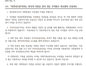 아카이브실1 [공문] '아카이브실'이라는 외국어 이름을 알기 쉬운 우리말로 바로잡아 주십시오. 받는 이 국회 방송 기획편성과 제목 '아카이브실'이라는 외국어 이름을 알기 쉬운 우리말로 바로잡아 주십시오. 1. 공공방송으로서 국회방송의 우리말글 사랑을 바랍니다. 2. 사단법인 한글문화연대(대표 이건범)는 한글날을 공휴일로 만드는 데 가장 앞장선 시민단체로서 ‘언어는 인권이다’라는 믿음으로 국민의 알 권리를 지키고자 공공기관의 쉽고 바른 공공언어 사용을 요구하고 있습니다. 3. '아카이브실'이라는 외국어 팻말은 국민의 알 권리를 위해 활동하는 국회방송에서 쓰이기에 바람직하지 않습니다. ‘자료보관소’나 ‘자료저장소’와 같은 쉬운 우리말로 바꾸어 쓰길 요청합니다. 1) 국회 방송 내의 자료실이 아카이브실이라는 외국어 팻말 이름을 달고 있는 화면을 2019년 10월 30일, 제이티비시방송 뉴스룸을 통해 전.. 2020. 2. 3. 이전 1 다음