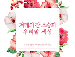 우리말909 [누리방송5-121] 배우리의 우리말 땅땅땅 27 문어발, 돌비, 재밌게가 함께하는 세계 유일 우리말 전문 누리방송 [우리말 아리아리 다섯째 타래 121회] ▶ 배우리의 우리말 땅땅땅 27 땅이름 학자 배우리 님과 함께 떠나는 땅이름 여행. 토박이말로 지어졌던 땅이름들이 한자의 음이나 훈을 빌어 한자로 표기되고 다시 일본식으로 바뀌어 오늘날까지 불리고 있으니... 그 역사를 거꾸로 더듬어 가며 땅이름들의 공통점을 파헤치다 보면 어느덧 넓디넓은 토박이말 곳간에 다다른다. 매주 화요일 방송!! ▷ 출연: 문어발(이건범), 재밌게(김명진), 돌비(정인환) ▷ 제작: 한글문화연대 국어문화원 ▷ 누리집: www.urimal.org 매주 화요일에 찾아 뵙겠습니다. 화요일: 배우리의 "우리말 아리아리" 팟빵에서 듣는 방법 1. 팟빵(podbbang.com) 에 접속.. 2019. 5. 21. [16기] 모둠 활동 소식/9모둠 푸르미랑 5월 15일! 5월 15일은 무슨 날이죠? 스승의 날, 겨레의 스승 세종대왕님이 태어나신 날입니다. 이렇게 기쁜 날을 우리말가꿈이가 기념하지 않을 수 없죠. 세종 나신 날을 위해 약 2주 전부터 가꿈이가 준비한 다양한 활동들이 페이스북에 올라오고 있는데요. 오늘은 9모둠 푸르미랑이 준비를 했습니다. 많이 봐주세요. 2019. 5. 17. [16기] 모둠 활동 소식-전체 활동 다들 5월 15일이 무슨 날인지 아시나요? 대부분 스승의 날로 알고 계실텐데요. 사실 5월 15일이 스승의 날인 이유는 세종대왕님의 생신이기 때문이랍니다. 세종대왕님은 음력 1397년 4월 10일에 태어나셨는데 이를 양력으로 바꾸면 5월 15일이라고 해요. 지난 5월 11일 토요일, 우리 가꿈이들은 영등포에 있는 선유도공원 원형극장에서 세종 나신 날 행사를 진행했는데요. 이렇게 인스타그램 모양으로 만든 사진틀에 사진을 찍으신 후 인스타그램에 올려주시면 경품을 드리는 행사도 진행했어요. #해시태그 는 우리말로 #꼬리별 이라고 하는데요. 다들 알고 계셨나요. 자 그럼 본격적으로 세종 나신 날 행사를 시작해 볼까요. 다같이 세종대왕님을 불러보도록 해요. 세종내왕님~~~ 토박이말로 날짜 읽고 문제 풀기 자음 모.. 2019. 5. 16. [누리방송5-120] 배우리의 우리말 땅땅땅 26 문어발, 돌비, 재밌게가 함께하는 세계 유일 우리말 전문 누리방송 [우리말 아리아리 다섯째 타래 120회] ▶ 배우리의 우리말 땅땅땅 26 땅이름 학자 배우리 님과 함께 떠나는 땅이름 여행. 토박이말로 지어졌던 땅이름들이 한자의 음이나 훈을 빌어 한자로 표기되고 다시 일본식으로 바뀌어 오늘날까지 불리고 있으니... 그 역사를 거꾸로 더듬어 가며 땅이름들의 공통점을 파헤치다 보면 어느덧 넓디넓은 토박이말 곳간에 다다른다. 매주 화요일 방송!! ▷ 출연: 문어발(이건범), 재밌게(김명진), 돌비(정인환) ▷ 제작: 한글문화연대 국어문화원 ▷ 누리집: www.urimal.org 매주 화요일에 찾아 뵙겠습니다. 화요일: 배우리의 "우리말 아리아리" 팟빵에서 듣는 방법 1. 팟빵(podbbang.com) 에 접속.. 2019. 5. 15. [알림] 공공언어학의 새로운 출발을 위한 학술 토론회(5/17) 공공언어학의 새로운 출발을 위한 학술 토론회 ▶ 때: 2019. 5. 17(금) 09:30~17:50 ▶ 곳: 국회의원회관 2층 제2세미나실 주최: 국립국어원 주관: 한국공공언어학회, 국회의원 정세균 [특강 주제] 1. 공공언어 개선의 필요성(이건범 한글문화연대) 2. 공공언어 개선 사업의 어제와 오늘(최홍열 강원대학교) [일정별 세부 계획] 시간 내용 사회: 서은아(상명대학교) 09:30~10:00 등록 및 접수 10:00~10:15 개회사: 김미형(공공언어학회 회장) 축 사: 정세균(국회의원) 격려사: 소강춘(국립국어원장) 제1부 특강 10:15~10:45 공공언어 개선의 필요성 이건범(한글문화연대) 10:45~12:15 공공언어 개선 사업의 어제와 오늘 최홍열(강원대학교) 12:15~13:30 점심.. 2019. 5. 14. 순우리말, “나를 알아주세요.” - 김유진 기자 순우리말, “나를 알아주세요.” 한글문화연대 대학생 기자단 6기 김유진 기자 yoojin1477@naver.com 순우리말을 어떻게 정의할지 생각해 본 적 있는가? 순우리말과 외래어를 확실히 분별할 수 있다고 자신하는가? 한글의 우수성이 알려지면서 순우리말에 대한 관심도 많이 높아졌다. 하지만 많은 사람들이 외래어 또는 한자어를 순우리말이라고 착각하곤 한다. 우선, 외래어를 순우리말로 잘못 아는 경우가 대다수다. 우리가 많이 쓰는 단어 중 시소(Seesaw), 댐(Dam), 비닐(Vinyl)을 순우리말로 잘못 알기도 한다. 그 외에 빵은 “pão“라는 포르투갈어에서 일본으로 전파되어 우리나라까지 들어와 우리말처럼 쓰는 외래어이며 망토(manteau), 고무(gomme)는 프랑스어, 그리고 냄비(なべ), .. 2019. 5. 10. 쉬운 공공언어로 지킬 수 있는 것은 무엇일까? - 송은혜 기자 쉬운 공공언어로 지킬 수 있는 것은 무엇일까? 한글문화연대 대학생 기자단 6기 송은혜 기자 song12358@naver.com ‘도네이션 스쿨’, ‘아웃리치활동’. 공공기관에서 국민을 상대로 사용한 공공언어들이다. 이 뜻을 아는 사람이 몇이나 될까? ‘교육기부학교’, ‘구호지원활동’이라는 우리말이 있지만 공공기관은 외국어를 사용한다. 이 어려운 용어들이 정보 전달을 어렵게 하여 국민 안전을 위협한다는 사실을 모르는 걸까? 공공언어를 바르게 사