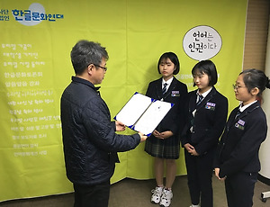 지난 6월 우리말을 가꾸고 우리말 활동을 열심히 해나갈 중고생 동아리 17곳을 뽑았습니다. 뽑힌 17곳의 중고생 동아리들은 6월부터 11월까지 학교안팎으로 우리말 사랑을 펼쳐나갔습니다. 심사위원: 손연홍 (주)산돌 전무이사, 김형주 마로스튜디오 이사, 이찬희 한글문화연대 운영위원, 차솔비, 김지연 우리말가꿈이 17기 대표, 부대표 국립국어원장상 으뜸 동아리는 , 한글문화연대 대표상 버금 동아리는 , 한글문화연대 대표상 보람 동아리는 , , , 이 선정되었습니다. 축하합니다.