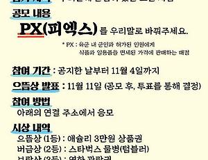 응모3 [13기] 모둠 활동 소식/1모둠, 4모둠, 13모둠 [우리말 가꿈이 13기 4모둠] 피엑스(PX)라는 말은 다들 한 번씩 들어본 말입니다. 하지만, 그 뜻은 무엇일까요. 피엑스(PX)라는 말보다 알기 쉬운 우리말로 바꾸는 공모전을 진행하고 있습니다. 많은 참여 부탁드립니다. - 공모전에서 당선된 작품을 바탕으로 국방부에 시정 요청을 할 예정입니다. - 응모는 우리말 가꿈이 페이지 좋아요를 누른 뒤, 참여하실 수 있습니다. * 공모전 참여 연결 주소 ▷ http://naver.me/5p4mafVD [우리말 가꿈이 13기 1모둠] 우리말 가꿈이 13기 1모둠이 만든 우리말 손전화기 반창고(케이스)를 소개합니다. 실리콘+하드케이스로 만들어 튼튼하고 모든 기종에 맞게 주문 제작이 가능합니다. 판매 가격은 15,000원으로 수익금의 일부는 한글과 우리말을 가꾸고 .. 2017. 10. 25. 답 그리고 정답 [아, 그 말이 그렇구나-187] 성기지 운영위원 한글학회는 월간 [한글 새소식]과 페이스북 ‘한글학회’ 마당에서 다달이 우리말 알아맞히기 문제를 내고 있다. 문제와 함께 제시하는 귀띔을 읽기만 하면 누구나 풀 수 있도록 했지만, 그렇다고 꼭 ‘정답’만을 보내야 하는 것은 아니다. 문제를 읽고 누구나 자신이 생각하는 ‘답’을 보낼 수 있다. 한글학회 담당자는 접수된 ‘답’들 가운데 ‘정답’을 맞힌 이들을 대상으로 추첨을 통해 상품을 준다. 텔레비전이나 라디오 방송에서는 시청자와 청취자를 위한 퀴즈 문제를 자주 내고 있다. 그런데 퀴즈를 내면서 진행자가 하는 말 가운데 고쳐야 할 부분이 있다. 가령 다음과 같은 경우이다: “이 문제의 정답을 아시는 분은 다음 번호로 곧 보내주시기 바랍니다.” 흔히 무심코 .. 2017. 5. 31. [이웃집 소식]2016 국어사전 진흥 공모전/국립국어원(~8/15) 국립국어원에서는 누구나 사전 편찬에 참여할 수 있는 사용자 참여형 국어사전 의 개통(2016년 10월 5일)을 앞두고, 낱말의 뜻풀이를 직접 해봄으로써 우리말의 가치를 깨닫고 아름다운 우리말을 담은 사전을 함께 만들어 갈 첫걸음으로 "함께 만들어 가요, 우리말 사전" 공모전을 개최합니다. 응모 방법 : "함께 만들어 가요, 우리말 사전" 공모전 누리집 참조 http://www.korean.go.kr/front/board/boardStandardView.do?board_id=4&mn_id=17&b_seq=1782&pageIndex=1 2016. 6. 15. 이전 1 다음