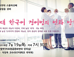한국어191 [마침] 7월 알음알음 강좌(26)-현대 경어법의 변화 방향/이정복 교수 ■ 주제: 현대 경어법의 변화 방향 - '님'의 확산과 기능의 다양성 - '-시-'의 기능 확대 - 객체 높임 '드리다'의 문법화 가능성 - 청자 중심의 경어법 사용 ■ 강사: 이정복 교수(대구대학교, 인문대학 한국어문학과) ■ 때: 2018년 7월 19일 목요일, 저녁 7시 30분부터 ■ 곳: 활짝(한글문화연대 마포 사무실 옆방) 2018. 7. 20. [알림] 7월 알음알음 강좌(26) - 현대 한국어 경어법의 변화 방향/이정복 교수 ■ 주제: 현대 한국어 경어법의 변화 방향 - ‘님’의 확산과 기능의 다양화, 주체 높임 ‘시’의 기능 확대, 객체 높임 ‘드리다’의 문법화 가능성, 청자 중심의 경어법 사용 등을 다룹니다. ■ 강사: 이정복 교수(대구대학교 국어학) ■ 때: 2018년 7월 19일(목), 저녁 7시 30분 ■ 곳: 활짝(마포 한글문화연대 강의실) ** 찾아오시는 길 더 자세히 보기 ■ 수강 신청 가기로드 중... 2018. 7. 5. ‘FAKE LOVE’ 대신 ‘가짜 사랑’은 촌스럽나요?-하성민 기자 ‘FAKE LOVE’ 대신 ‘가짜 사랑’은 촌스럽나요? 한글문화연대 대학생 기자단 5기 하성민 기자 anna8969@naver.com 한국음악의 새 역사를 쓴 ‘방탄소년단’ 지난 5월 18일 새로운 음반으로 가요계에 돌아온 방탄소년단이 미국 ‘빌보드 200’에 1위로 진입한 데 이어, ‘핫 100’에 10위로 진입하였다. 빌보드 200은 음반의 판매량, 트랙별 판매량, 실시간 재생(스트리밍) 실적 등을 합산하는 방식으로 해당 주에 미국에서 인기가 높은 음반의 순위를 산정하는 방식의 도표이다. 과거에 원더걸스, 싸이, 엑소 역시 빌보드 차트에 이름을 올렸으나 방탄소년단이 더욱 주목받은 이유는 한국 가수의 최고 기록이기 때문이다. 각종 언론에서도 방탄소년단이 케이 팝(k-pop)의 새 역사를 썼다며 기대감을.. 2018. 6. 29. [이웃집 소식] 학글학회 시민강좌-우리말·우리글의 힘 제4기 “우리말·우리글의 힘, 시민 강좌” 110년의 역사 동안 우리 말글을 가꾸고 지켜온 한글학회는 서울 한글가온길 중심에 있는 한글회관에서 제4기 “우리말·우리글의 힘, 시민 강좌”를 마련합니다. 2018년 봄을 맞이하여 여섯 차례에 걸쳐 아래와 같이 우리 말글에 관한 이야기 마당을 펼칩니다. 우리말, 우리글, 그리고 우리 문화에 관심 있는 시민들께 유익한 기회가 될 것으로 믿습니다. 부디 오셔서 함께 누려 주시면 고맙겠습니다.] •때: 5월 17일(목)~6월 21일(목) 저녁 5시~6시 30분 •곳: 한글학회 강당 (서울시 종로구 새문안로3길 7) 2018. 4. 19. [국민신문고]명지국제신도시의 외국어 별칭 사용 계획을 반대합니다. 명지국제신도시의 외국어 별칭 사용 계획을 반대합니다. 사단법인 한글문화연대(대표 이건범)에서는 지난 4월 5일 부산시청에 “명지국제신도시 새 이름을 외국어로 짓는 일을 멈춰 달라”는 항의 공문을 보냈습니다. 이에 부산시청 좋은기업유치과에서는 4월 9일 “명지국제신도시라는 기존 이름은 그대로 두고 새 명칭(영어식 이름)을 별칭 형태로 함께 사용하려고 한다.”고 답변하였습니다. 우리 단체는 다음과 같은 까닭으로 명지국제신도시의 외국어 별칭 사용 계획에 반대합니다. 첫째, 부산시에서는 “차별화된 ‘명품 국제업무 도시’로서의 위상을 높이고, 서부산 개발시대의 도시경쟁력을 강화”하기 위하여 외국어 별칭을 짓는다고 합니다. 이는 매우 잘못된 생각입니다. ‘명지’라는 우리말로는 부산시에서 말하는 차별화도 명품도 될 .. 2018. 4. 12. 헌법 개정안, 얼마나 알기 쉬울까? -장진솔 기자 헌법 개정안, 얼마나 알기 쉬울까? 한글문화연대 대학생 기자단 4기 장진솔 기자 jjsol97@naver.com △알기 쉬운 헌법 만들기 국민운동본부 출범 기자회견에서 본부 공동대표인 이건범 한글문화연대 대표가 발언하고 있다. (출처: 뉴스1) 지난 1월 17일, 한글학회와 한글문화연대 등 국어단체, 흥사단과 한국와이엠시에이(YMCA)전국연맹 등 시민단체, 전국교직원노동조합과 참교육을위한전국학부모회 등 교육학부모단체를 비롯한 41개 단체가 모인 알기 쉬운 헌법 만들기 국민운동본부(이하 ‘국민운동본부’)가 출범했다. 이후 참여 단체는 53개로 늘어났다. 이들은 ‘개정하는 헌법은 알기 쉬운 우리말글을 쓰자.’는 목표를 가지고 활동했다. 그리고 두 달 여 뒤인 지난 3월 26일, 문재인 대통령이 헌법 개정안을.. 2018. 4. 12. 화장품 제품, 꼭 영어 이름이어야 하나요? - 이한슬 기자 화장품 제품, 꼭 영어 이름이어야 하나요? 한글문화연대 대학생기자단4기 이한슬 기자 lhs2735@gmail.com 최근 화장품을 주제로 유튜브 방송을 하는 유명 진행자인 이사배가 외국어를 사용하지 않고 한국어로만 화장할 수 있을지를 방송하여 화제가 되었다. 그녀가 호기롭게 도전했음에도 끊임없이 자신도 모르게 외국어 단어를 말하다 놀라는 모습이 많은 사람을 웃기게 했다. 그러나 외국어에 익숙해져 있는지에 대해 재고하게 되는 계기가 되기도 하였다. 방송에서 이사배는 자신이 사용한 화장품과 화장품 도구를 한국어로 바꿔 말하며 하나씩 짚어줬다. 그런데 사용한 화장품 도구뿐만 아니라 화장품 브랜드, 제품 이름까지 모두 영어였기에 아무리 한국어로 번역