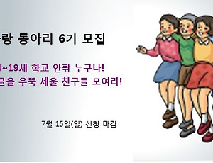 우리말 사랑 동아리 6기 모집 한글문화연대 '우리말 사랑 동아리 6기'를 모집합니다.- 쉬운 말로 국민과 소통하는 공공언어문화- 품격있고 올바른 말이 이끄는 언어문화 - 어른의 관심과 청소년의 참여로 맑아지는 언어문화를 퍼뜨려 주세요. 신청 기간 2018년 7월 15일(일)까지 * 마감일이 학교 시험과 겹쳐 신청서 작성에 어려움이 많다는 문의가 많습니다. 신청 마감일을 7월 15일로 연기했습니다. 7월 21일(토), 서울에서 열리는 오름마당 일정을 꼭 확인해 주시기 바랍니다. 신청 자격 우리말과 한글을 주제로 ‘언어문화 개선’ 활동을 하고자 하는 중·고등학생 동아리※ 새롭게 활동하고자 하는 사람도 동아리를 만들어 지원할 수 있습니다. ※ 동아리 최소 인원은 3명입니다. ※ 신청할 수 없는 동아리 - 개인(강사), 지역, 단체, 시설의.. 2018. 7. 4.