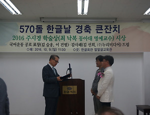 한글문화연대1472 [와이티앤 라디오] 최영일의 뉴스 정면승부/대담: 이건범 한글문화연대 대표 * [와이티앤 라디오 '최영일의 뉴스 정면승부'] ■ 방송 : FM 94.5 (18:10~20:00) ■ 방송일 : 2016년 10월 7일 (금요일) ■ 대담 : 이건범 한글문화연대 대표 *최영일의 뉴스! 정면승부 누리집 들어가기 2016. 10. 14. [마침] 570돌 한글날 "한글 사랑해" 행사 ■ 570돌 한글 꽃바치기 한글문화연대에서는 570돌 한글날 맞이 행사로 지난 10월 5일(수)부터 10월 9일(일)까지 서울 광화문 세종대왕 동상 앞에서 "한글 사랑해" 꽃 바치기와 세종대왕님께 하고 싶은 말을 붙임 쪽지에 써서 붙이는 행사를 마련하였습니다. [관련 기사] * 노컷뉴스: '한글날 맞아 꽃 꽂는 아이들' (20116/10/06)--기사 보기 * 뉴시스 : 한글 사랑해(2016/10/09)--기사 보기 * 천지일보: "꽃보다 아름다운 한글 사랑해요"(2016/1008)--기사 보기 * 연합뉴스: 꽃으로 쓴 '한글 사랑해'(2016/10/07)--기사 보기 ■ 우리말 가꿈이, 온누리 백일장 10월 8일(토) 낮 2시 세종로 공원(조선어학회 한말글 수호탑 앞)에는 문학작품을 창작하는 즐거움을 .. 2016. 10. 13. [알림] 570돌 한글날 경축 큰잔치/국어운동 공로 표창 한글학회는 지난 1926년 '가갸날'을 제정한 뒤 꾸준히 한글날 큰잔치를 이어오고 있습니다. 올해는 '2016 주시경 학술상' 시상을 비롯하여 아래와 같이 상 드리는 자리를 마련하였습니다. 국어운동 공로 표창에는 우리 단체 이건범 대표와 우리 단체 운영위원으로 활동하고 있는 김슬옹 위원님이 받았습니다. ■ 때: 2016년 10월 9일(일) 낮 11시 ■ 곳: 한글회관 얼말글교육관 ■ 570돌 한글날 경축 큰잔치 ○ 2016 주시경 학술상 시상: 최낙복(동아대 명예교수) ○ 국어운동 공로 표창: 김슬옹(전국국어운동대학생동문회 회장) 이건범(한글문화연대 상임대표) ○ 감사패 드림: 김선희(중국 흑룡강성지회 지회장) ㈜누리미디어(대표이사: 최순일) * 한글학회- 570돌 한글날 경축 큰잔치 영상 보러 가기 2016. 10. 13. 570돌 한글날 '한글사랑해' 시민 꽃 바치기 사진보기 2016년 10월 9일, 570돌 한글날 광화문 광장 세종대왕 동상앞에 꽃 글자판을 세웠습니다. 한글을 만들어 주신 세종대왕님께 시민들이 꽃을 바치는 참여 행사였습니다. 한 송이 한 송이 꽂아서 만든 글자는 "한글 사랑해"였습니다. 또한, 붙임쪽지에 고마운 마음을 함께 적어 꽃 글자판을 가득 채웠습니다. 사진 보기(화살표를 눌러 넘기세요) 사진 보기(자동) 2016. 10. 13. ‘미망인’의 그림자 [아, 그 말이 그렇구나-155] 성기지 운영위원 10월 8일, 한글날 전야제 행사인 “온 세상, 한글로 비추다”에서 젊은 여성 (문화체육관광부) 장관이 무대에 오르자 일부 관객들 사이에서 짧은 탄성이 울렸다. 우리나라는 이미 여성 대통령이 세계를 누비고 있어 새로운 일이 아닌데도 말이다. 과거 오랫동안 집안일이나 하는 사람으로 취급돼 왔던 여성들이 오늘날에는 남성과 동등한 사회 활동을 펼치고 있다. 그럼에도 우리말에는 여자를 낮추어 보는 말들이 여전히 남아서 쓰이고 있다. ‘미망인’이라는 말도 그 가운데 하나다. 미망인의 뜻을 그대로 풀이하면, “아직 따라 죽지 못한 사람”이다. 본디 이 말은 남편과 사별한 여자가 자신을 낮추어 이르던 일인칭 대명사였다. 그런데 요즘에는 이 말이 남편과 사별한 여자를 .. 2016. 10. 13. [보도자료] 2016년 우리말 사랑꾼, 해침꾼 2016. 10. 12. [보도자료]행정부 보도자료 하나마다 외국 글자 표기 2.2회씩 나와 2016. 10. 8. ‘쉽고 바른 언어문화 확산을 위한’ 학술회의- 서경아 기자 ‘쉽고 바른 언어문화 확산을 위한’ 학술회의 한글문화연대 대학생 기자단 3기 서경아 기자 calum0215@gmail.com 들어야 한다 아무 소리 내지 않는 듯해도 나는 뿌리가 아니요 하늘을 이고 이슬 머금은 잎이라 (중략) 땅 위에 쓰자 흙 속 어둠 벌레 웃음까지도 나는 뿌리와 하나요 지워지지 않을 기억 그날엔 그날엔 꽃이라 _ 그날엔 꽃이라 (이현관 작곡, 이건범 작사) 잎과 뿌리, 세종대왕과 백성은 같지 않으면서도 하나이다. 그들이 함께 땅 위에 쓴 역사와 문화가 꽃으로 피어날, 그날을 바라는 노랫말이 울리며 570돌 한글날 맞이 한글문화토론회가 시작되었다. 한글문화연대는 23일 한국언론진흥재단(프레스센터) 19층 기자회견실에서 ‘한자어의 이해과정과 어원 지식의 역할’에 관한 학술회의를 열었다. .. 2016. 10. 7. [알림] 10월 9일 한글날 기념 행사 안내 '한글 사랑해' 10월 9일은 570돌 한글날입니다. 한글문화연대에서는 꽃으로 "한글 사랑해"라는 꽃 글씨를 만들어 한글날을 축하하는 자리를 마련하였습니다. 때 : 10월 5일(수)~9일(일) 낮 12시부터 6시까지 곳 : 서울 광화문 광장, 세종대왕 동상 앞 2016. 10. 6. 이전 1 ··· 122 123 124 125 126 127 128 ··· 164 다음