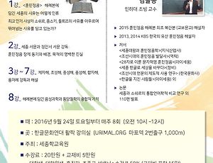 한글문화연대1472 [보도자료] 한자어 이해에 한자 지식 크게 도움 안돼 2016. 10. 6. 글이 빛나는 밤에 글이 빛나는 밤에 한글문화연대 대학생 기자단 3기 문학 모둠 이민재 기자 2942207@naver.com 서경아 기자 calum0215@gmail.com 이지은 기자 freeloves84@hanmail.net 한글문화연대 대학생 기자단의 문학을 사랑하는 세 사람. 이지은 기자, 서경아 기자, 이민재 기자가 모여서, ‘문학’이란 소재를 가지고 ‘우리말’을 알릴 수 있는 방법이 무엇일지 고민해 보았습니다. 그러던 중 사람들의 사연을 듣고 공감과 위로를 통해 소통하는 라디오 형식을 이용하면 저희의 의도를 잘 보여드릴 수 있겠다는 생각이 들어, 보이는 라디오 ‘글이 빛나는 밤에’를 제작해 보았습니다. ‘글이 빛나는 밤에’는 고민이 있는 청취자의 사연을 듣고 아름다운 우리말로 가득한 문학과 함께 위로해주는 라디오.. 2016. 9. 30. 가슴꽃 [아, 그 말이 그렇구나-153] 성기지 운영위원 시월이다. 시월은 문화 국경일인 한글날을 품고 있어서 우리 겨레에겐 더욱 높고 푸른 계절이다. 한글날을 앞뒤로 나라 곳곳에서는 우리말 우리글 자랑하기 행사가 다채롭게 펼쳐진다. 갖가지 기념행사를 할 때 보면, 참가자들 가운데 가슴에 꽃을 달고 있는 사람들을 볼 수 있다. 이 꽃을 가리키는 우리말이 잘 알려져 있지 않다. 어떤 사람은 ‘코사지’라 부르고, 또 ‘꽃사지’라 부르는 사람들도 있다. 이 꽃의 명칭은 프랑스어인 ‘꼬르사쥬’에서 왔는데, 사전에는 외래어 표기법에 따라 ‘코르사주’가 표준말로 올라와 있다. 그러나 이제 기념식에서 가슴에 꽃을 다는 문화가 우리나라에도 거의 정착되었기 때문에, 우리말이 필요하게 되었다. 그래서 요즘 순화해서 쓰는 말이 ‘.. 2016. 9. 29. [누리방송3-14] 그러니까 말이야-10월 9일은 한글날입니다. [그러니까 말이야 셋째 타래 14회] 10월 9일은 한글날입니다. 문어발, 재밌게, 돌비가 함께하는 세계 유일 우리말 전문 누리방송 ▶ 여는 수다:언어에도 권력이 있다. ▶ 재밌게의 아하 그렇구나: 주접대다/주접스럽다 ▶ 돌비의 우리말 소식: 삼촌도 이제 작은 아버지로 부른다/ 우리말 뜻풀이 공모전/ 어린이 보행 안전 위한 학교 주변 옐로우 카펫 ▶ 정재환 오늘은: 여러분 ▶ 도전 천시: 신동엽 '산에 언덕에' ▷ 출연: 문어발(이건범), 재밌게(김명진), 돌비(정인환) ▷ 제작: 한글문화연대 국어문화원 ▷ 누리집: www.urimal.org "이건범의 그러니까 말이야" 듣는 방법 1. 팟빵(podbbang.com) 에 접속하여 '그러니까 말이야' 로 검색한다. 2. '그러니까 말이야' 채널에서 각 회차.. 2016. 9. 28. 우리말글 강연 활동 ● 이건범 대표 특강 ▷ 강연 주제 : 효율과 인권을 추구하는 국어 소통의 길 ▷ 대상 : 한국교통대학교 학생 대상 ▷ 때 : 2016년 9월 8일 한국교통대학교 강당 2016. 9. 22. 애띤 얼굴? 앳된 얼굴? [아, 그 말이 그렇구나-152] 성기지 운영위원 자기 나이에 비해 젊어 보이는 사람은 주위의 부러운 눈길을 받기 마련이다. 동안으로 인기를 모으는 연예인들을 분석해 보면, 아기처럼 이마가 상대적으로 넓고, 눈이 동그랗고 얼굴 전체에 비해 코와 턱의 길이가 약간 짧은 편이라고 한다. 흔히 이렇게 어려 보이는 얼굴을 가리켜 ‘애띠다’, ‘애띤 얼굴’이라고 한다. 그러나 이것은 바른 말이 아니다. 우리말에 ‘어리다’는 뜻을 더해 주는 접두사 가운데 ‘애’라는 말이 있다. 호박에 ‘애’를 붙여서 ‘애호박’이라고 하면 어린 호박이 된다. 이 ‘애’라는 말에 어떤 태도를 뜻하는 ‘티’가 붙어 ‘애티’라 하면 “어린 태도나 모양”을 뜻하는 명사가 된다. “애티가 난다.”라고 쓴다. 그러나 이 말을 ‘애티다’ 또는 .. 2016. 9. 22. [이웃집 소식] 인류의 최고 고전 <훈민정음 해례본> 강독 강의 세종학교육원 2기 모집 2016. 9. 12. 반죽. 변죽, 딴죽 [아, 그 말이 그렇구나-151] 성기지 운영위원 우리말에 ‘반죽이 좋다’란 표현이 있다. ‘반죽’은 “쌀가루나 밀가루에 물을 부어 이겨 놓은 것”이다. 이 반죽이 잘 되면 뜻하는 음식을 만들기가 쉽기 때문에, 마음먹은 대로 원하는 물건에 쓸 수 있는 상태를 ‘반죽이 좋다’고 말한다. 이 뜻이 변해서 오늘날에는 “쉽사리 노여움이나 부끄러움을 타지 않을 때”에도 ‘반죽이 좋다’고 말한다. 그런데 이런 경우의 ‘반죽이 좋다’를 흔히 ‘변죽이 좋다’고 혼동해서 쓰는 경우가 있다. ‘반죽’과 ‘변죽’의 발음이 비슷해서 헷갈리는 경우이다. ‘변죽’은 “그릇이나 과녁의 가장자리”를 뜻하는 말이다. 한가운데가 아니라 가장자리이다. 여기에서 나온 말이 ‘변죽을 울리다’인데, “바로 집어 말을 하지 않고 둘러서 말을 하.. 2016. 9. 8. 우리말글 강연 활동 ● 이건범 대표 특강 ▷ 강연 주제 : 언어와 글자 속의 인권 ▷ 대상 : 안양 부흥고등학교 학생 대상 ▷ 때 : 2016년 9월 6일 2층 대수실 2016. 9. 7. 이전 1 ··· 123 124 125 126 127 128 129 ··· 164 다음